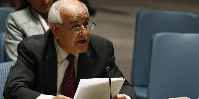 جدد مندوب فلسطين الدائم لدى الأمم المتحدة رياض منصور مطالبته المجتمع الدولي بتحمل مسؤولياته والضغط على الاحتلال الإسرائيلي لوقف هدم منازل الفلسطينيين وممتلكاتهم في انتهاك جسيم للقانون الدولي.