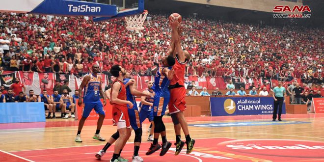 من مبارة الاتحاد أهلي حلب مع الكرامة في ثاني مباريات الدور النهائي لدوري كرة السلة