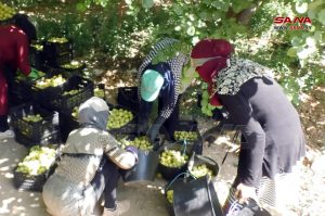 المزارع طوني جريج وخلال مرافقتنا له للوصول إلى بستانه عبر طريق ترابي تزين جوانبه أشجار المشمش بثمارها التي شارفت على النضج يقول “نبدأ منذ ساعات الصباح جني المحصول بواسطة عمال نتعاقد معهم سنوياً من غوطة دمشق للإقامة معنا طيلة موسم القطاف نظراً لخبرتهم في هذا المجال” مبيناً أن العمال والعاملات يوزعون العمل فيما بينهم فالبعض يصعد السلالم الخشبية حاملين معهم أواني بلاستيكية لوضع حبات المشمش والبعض يقوم بالتقاط الحبات المتساقطة على الأرض ووضعها في الصناديق البلاستيكية بينما يقوم البعض الآخر بعملية فرز الحبات حسب حجمها ولونها وجودتها لتعبئتها وتوضيبها وفق مواصفات تضمن تسويق المحصول بشكل جيد أما داخل المحافظة أو خارجها.