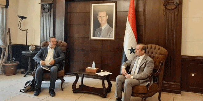 بحث المهندس حسين مخلوف وزير الإدارة المحلية والبيئة رئيس اللجنة العليا للإغاثة اليوم مع مدير عام منظمة(انترسوس) موشو كوريتس والوفد المرافق إمكانية التعاون لتنفيذ مشاريع مشتركة تلبي احتياجات السكان في المناطق الأكثر احتياجاً.