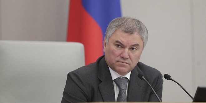 أكد رئيس مجلس الدوما الروسي فياتشيسلاف فولودين ضرورة تحرير أوكرانيا من النازية وضمان عدم إنتاجها وامتلاكها السلاح النووي.
