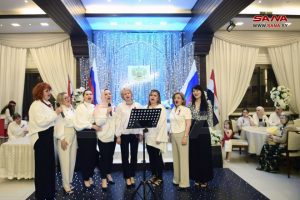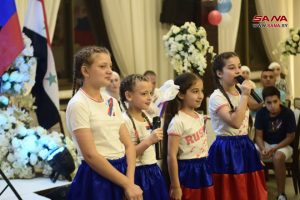 وتم خلال الاحتفالية في ندوة الشهباء الجديدة تقديم فقرات منوعة من الأناشيد الوطنية الروسية وأغان من الفلكلور الروسي أداها عدد من أطفال الجالية.