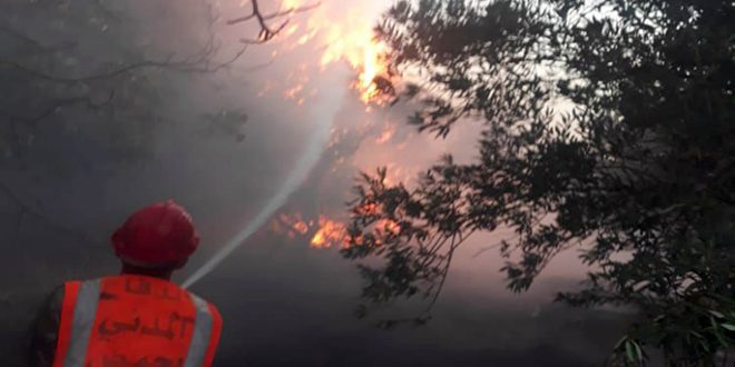 وذكر مدير الدفاع المدني في حمص العميد غياث عاقل في تصريح لمراسل سانا إن غرفة عمليات الفرع تلقت بلاغاً حول نشوب حريق بأشجار زيتون وجوز في إحدى المزارع قرب دوار النسر بمدخل المدينة الغربي وعلى الفور تحرك العناصر إلى المكان وعملوا مع عناصر فوج الإطفاء على تطويق الحريق ومنع امتداده إلى المنازل المجاورة بسبب الرياح وتمكنوا من السيطرة عليه وإخماده.