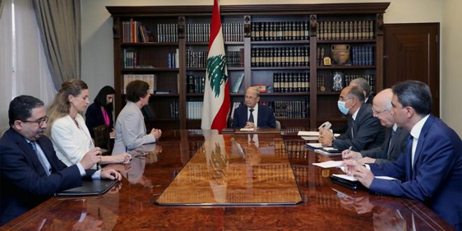 وخلال اجتماعين عقدهما اليوم مع كل من المنسقة الخاصة للأمم المتحدة في لبنان جوانا فرونيسكا ووفد نيابي لبناني لفت عون إلى أنه سيبلغ الوسيط الأميركي في المفاوضات آموس هوكستين موقف لبنان المتمسك بحقوقه في مياهه وباستثمار ثروته الغازية والنفطية لدى عودة المفاوضات غير المباشرة مع كيان الاحتلال الإسرائيلي.
