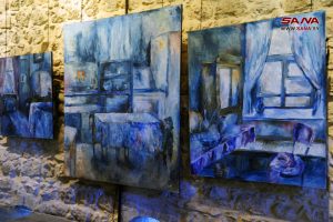 وعن الأبعاد الكبيرة للوحاتها “غرف” أكدت ضرورة استخدام هذه الأبعاد التي تخدمها في تطبيق أفكارها مشيرة إلى اللون الأزرق الطاغي في لوحاتها والذي يرمز للهدوء والسلام.
