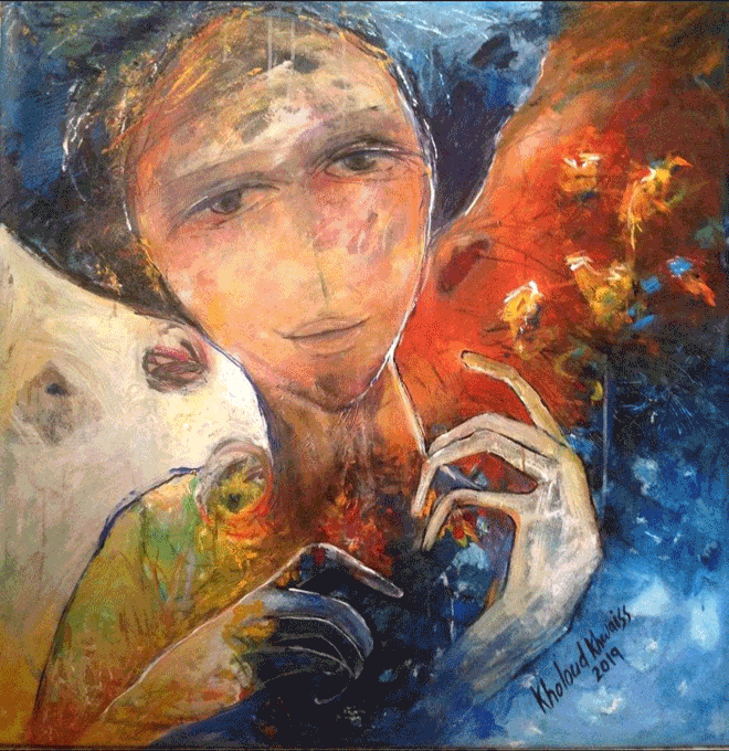 تجد الفنانة التشكيلية السورية المغتربة خلود خويص في لوحتها المساحة الرحبة التي يمكن أن تحول فيها الألم إلى غبطة وعبرها تنسج خيوط أفكارها ومشاعرها ورؤءاها محملة إياها الفيض الوجداني الذي تريد نقله للمشاهد لتكون هي الشاهد على الزمان والمكان.