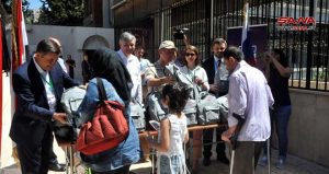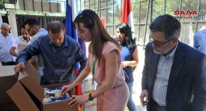 ضمن أعمال الاجتماع الرابع لمتابعة المؤتمر الدولي حول عودة اللاجئين والمهجرين السوريين قدم اليوم وفد روسي يضم ممثلين عن بعض المؤسسات الاجتماعية الروسية مساعدات إنسانية لجمعيات ومؤسسات أهلية بدمشق تهتم بالأطفال والمسنين والأسر المحتاجة وذلك في المركز الثقافي الروسي بدمشق.