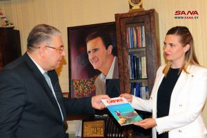 بحث وزير التربية الدكتور دارم طباع مع مديرة التعاون والتخطيط الدولي بوزارة التربية الروسية ستاتورة ندتيجتا سيرغيفينا والوفد المرافق لها سبل تعزيز العلاقات التربوية وتبادل الخبرات ولا سيما في مجال التعليم المهني وذلك على هامش أعمال الاجتماع الرابع السوري الروسي المشترك لمتابعة المؤتمر الدولي حول عودة اللاجئين والمهجرين السوريين.
