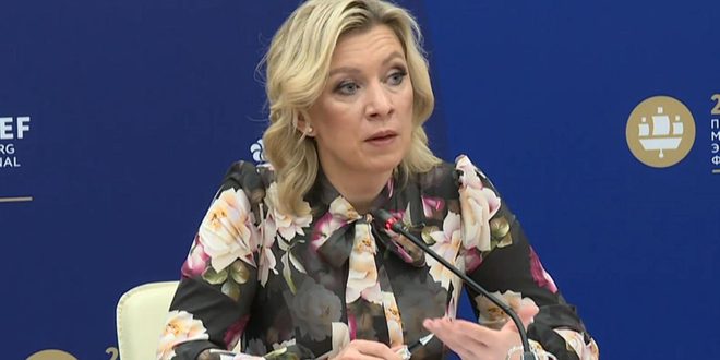 وأوضحت زاخاروفا خلال مؤتمر صحفي اليوم على هامش منتدى سان بطرسبورغ الاقتصادي أن القوات الأوكرانية قتلت مدنيين وأطفالا في منطقة دونباس بأسلحة غربية محظورة مشيرة إلى أن الغرب يتجاهل ذلك ويواصل مع نظام كييف بث أخبار مزيفة حول العملية العسكرية الروسية.
