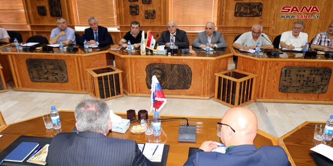 وعقب الاجتماع اطلع الوفد الروسي خلال جولة له على واقع المخابر في كلية الهندسة المدنية.