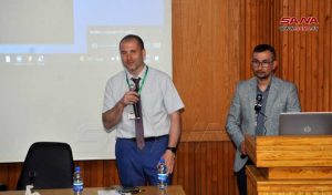 الأستاذ الدكتور سشيك يور فيتش قدم محاضرة عبر الفيديو من مدينة سانت بطرسبورغ ركز فيها على معالجة الأورام عبر الأشعة الضوئية حيث بين أن الخلية السرطانية تتميز عن الخلية العادية في سرعة التكاثر ويمكن السيطرة عليها من خلال نواة الخلية نفسها عبر أجهزة تصنع في اتحاد المصانع الروسية لافتاً إلى أن هذه الأجهزة لا تحتاج لصيانة أو طاقة كهربائية كبيرة ويمكن التحكم بالموجات التي تصدرها وتجنب الأعراض الجانبية لها.