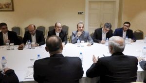 عقد وفد الجمهورية العربية السورية برئاسة الدكتور أيمن سوسان معاون وزير الخارجية والمغتربين صباح اليوم جلسة مباحثات مع الوفد الإيراني برئاسة علي أصغر خاجي كبير مستشاري وزير الخارجية للشؤون السياسية في اليوم الثاني للاجتماع الدولي الـ 18 حول سورية بصيغة أستانا.
