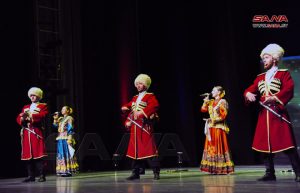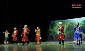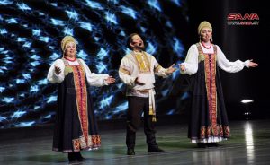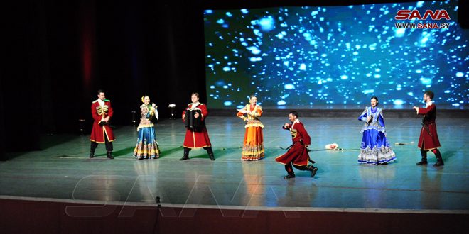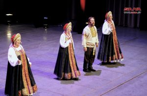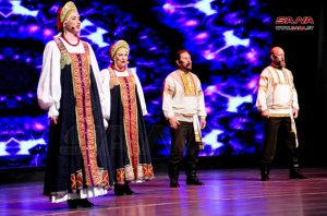 تحت شعار (من روسيا إلى الشعب السوري) وبالتعاون مع مركز التنسيق الروسي السوري أقيم اليوم حفل موسيقي راقص تضمن مجموعة من الرقصات والأغاني الفلكلورية الروسية كتحية للشعب السوري على خشبة مسرح الأوبرا بدار الأسد للثقافة والفنون.