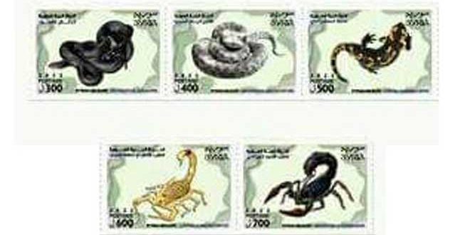 أصدرت المؤسسة السورية للبريد مجموعة طوابع بريدية تذكارية من الحياة البرية والمائية في سورية.