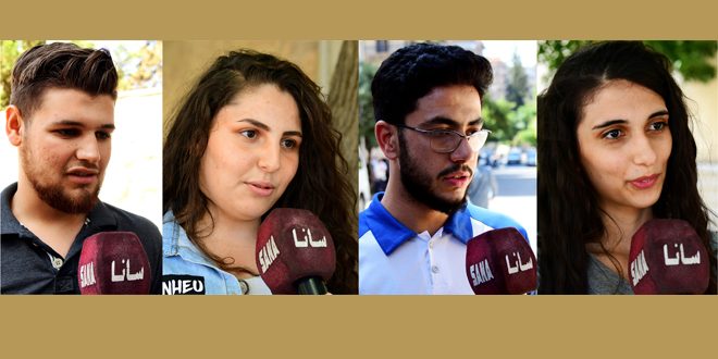 مراسلة سانا التقت اليوم عدداً من طلاب الثانوية العامة بفرعيها العلمي والأدبي ورصدت آراءهم حول مستوى الأسئلة حيث رأت الطالبة غنى عاصي من أمام مركز الشهيد سليم حسن شعيب بالمزة أن أسئلة مادة اللغة الأنكليزية كانت مناسبة لمختلف المستويات وتركزت على مدى فهم الطالب مشيرة إلى أن أسئلة الدورة الحالية بمختلف المواد كانت جيدة لجهة التنوع والوقت باستثناء مادة الرياضيات كانت بحاجة إلى وقت أطول.