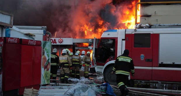 وبدأ الحريق في الطابق الأول من المركز التجاري المؤلف من ثلاثة طوابق والقائم على مساحة قدرها نحو 4 الاف متر مربع.
