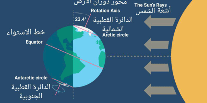 وأوضح البيش في تصريح لـ سانا أن تباين عدد الأيام بين الفصلين ناتج عن عدم تحرك الارض بسرعة ثابتة في مدارها الإهليجي حول الشمس لذا فالفصول ليست متساوية الطول في المتوسط لافتاً إلى أنه مع حدوث الانقلاب الصيفي في نصف الكرة الشمالي والشتوي في نصف الكرة الجنوبي يبدأ مشوارهما الثلاثاء المقبل عند الساعة 9.13 صباحاً بتوقيت دمشق حسب تواقيت البرامج الزمنية للفصول لهذا العام للشمال ويوم الأربعاء الساعة 21.48 في الجنوب.