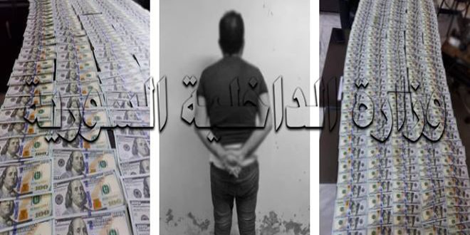 وأوضحت وزارة الداخلية في بيان تلقت سانا نسخة منه اليوم أنه وفقاً للمعلومات الواردة تمكن فرع مكافحة المخدرات من القبض على شخص في محلة معربا بريف دمشق يقوم بترويج عملة أجنبية مزورة من فئة الدولار الأمريكي وضبط بحوزته مبلغ 18800 دولار أمريكي مزور.