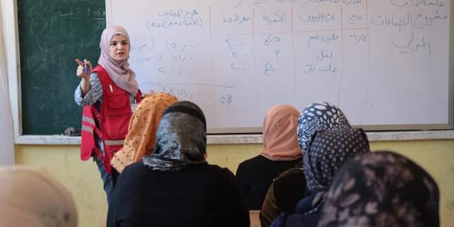 استفادت 78 سيدة في مدينة نوى بريف محافظة درعا من مشروع الصناعات المنزلية الذي نفذه فريق (سبل العيش) التابع لفرع الهلال الأحمر العربي السوري في المحافظة.