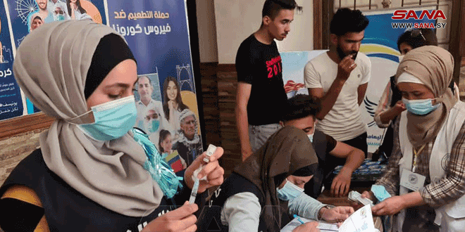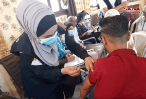 إلى ذلك تستمر مديرية صحة الحسكة بحملة التطعيم الوطنية التي بدأت في الـ 19 من الشهر الجاري من خلال 230 من الكوادر الصحية موزعين على المراكز الصحية والفرق الجوالة لتغطية المناطق الريفية والتجمعات السكانية التي لا توجد فيها مراكز ثابتة.