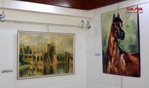الفنانة التشكيلية سهام منصور شاركت بعدة لوحات تشمل بمضمونها رسم الخيول بكل حالاتها واعتبرت أن المعرض المشترك يتيح للفنان التواجد في الساحة الفنية وعرض نتاجه وإيصال رسالته إلى الجمهور بما يسهم في خلق حالة من التلاقي والتآلف في الأفكار الفنية.