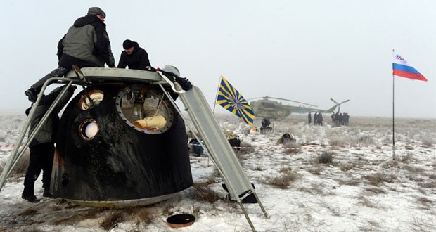 أعلن مركز التحكم في الرحلات الفضائية أن مركبة “سويوز /تي ام ايه 14 ام بطاقمها الدولي المتألف من ثلاثة أشخاص هبطت بنجاح في سهول كازاخستان.