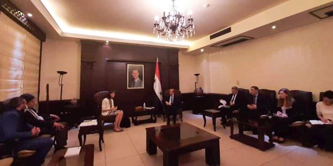الوزير مخلوف أشار خلال اللقاء إلى أهمية التركيز على الأولويات المتمثلة بعودة المهجرين إلى وطنهم ومتابعة العمل بالتوازي في كل المناطق لتوفير جميع الخدمات من بنى تحتية ومدارس ومشاف ومشاريع سبل العيش وتنفيذ المشاريع التي تسهم في تعزيز خدمات الإدارة المحلية وتنمية قدرات المجالس المحلية في إدارة مواردها.