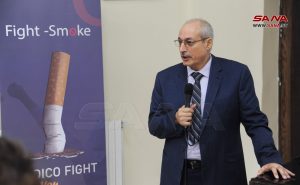 الدكتور بسام درويش رئيس شعبة الجراحة الصدرية بمشفى المواساة أشار إلى أن مكافحة التدخين تحتاج إلى تضافر جهود جميع الجهات والمؤسسات في المجتمع مبيناً أن وزارة التعليم العالي والبحث العلمي وضعت مصفوفة تنفيذية متكاملة للتعامل مع هذا الموضوع وتم تقديمها إلى اللجنة الوطنية لمكافحة التدخين.