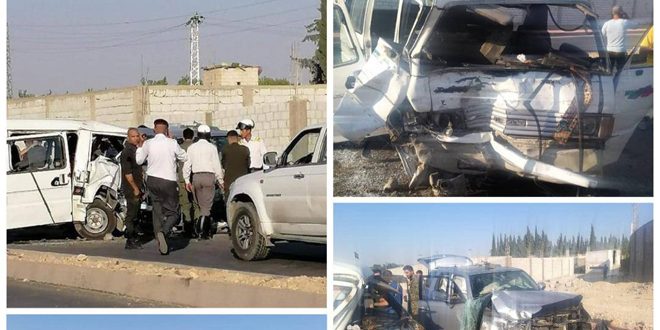 وأوضحت وزارة الداخلية في بيان تلقت سانا نسخة منه اليوم أن مركبة نوع تويوتا خاصة لبنانية يقودها مواطن سوري اصطدمت بمركبة نوع ميكروباص على طريق الروضة شارع المستقبل في محلة السيدة زينب.