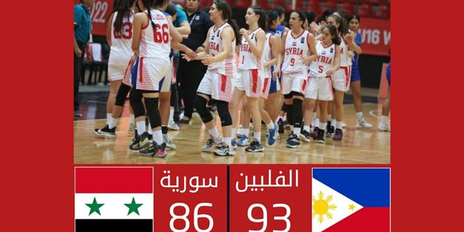 خسر منتخب سورية لكرة السلة للسيدات تحت 16 عاماً أمام نظيره الفلبيني بنتيجة 93-86 نقطة في ثاني مبارياته في بطولة كأس آسيا للمستوى الثاني المقامة حالياً في العاصمة الأردنية عمان.