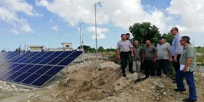 بدأت مؤسسة مياه الشرب باللاذقية اليوم استثمار آبار الحويز بريف جبلة بالطاقة الشمسية لدعم الوارد المائي للقرية والتخفيف من آثار فترات التقنين الكهربائي على عمل الآبار.