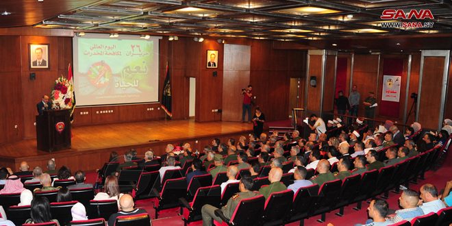 وأضاف الوزير الرحمون: “أن سورية تشارك المجتمع الدولي في اليوم العالمي لمكافحة المخدرات تأكيداً منها على التزامها في مواجهة هذه الآفة الخطيرة ولما تخلفه هذه السموم من أضرار صحية واجتماعية واقتصادية كارثية على الفرد والمجتمع” مبيناً أن سورية كانت وما زالت تلعب دوراً مهماً في دعم جهود المجتمع الدولي لمكافحة هذه الآفة حيث وقعت على كل الاتفاقيات الدولية المتعلقة بالإتجار غير المشروع بالمخدرات بالإضافة إلى مشاركتها في مختلف الفعاليات التي تعنى بمكافحة ظاهرة المخدرات والإتجار بها.