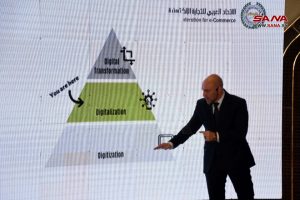 وأكد اللواء أسامة السعودي من مصر الأمين العام للاتحاد العربي للتجارة الإلكترونية في كلمته أن سورية تقدم دعماً كبيراً لسياسة التحول الرقمي والتعاون العربي المشترك في هذا المجال لافتاً إلى قيام الاتحاد بعملية التنسيق ما بين الدول العربية ونقل الخبرات بينها.