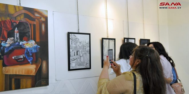 دمشق-سانا استضاف المركز الثقافي العربي في حي الميدان بدمشق اليوم معرضاً فنياً جماعياً