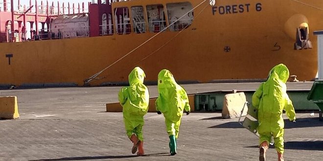 وأضاف السرطاوي: إن المختصين وفريق المواد الخطرة في الدفاع المدني يتعاملون مع حادثة تسرب الغار في الميناء لافتاً إلى أنه تم عزل المنطقة وإخلاء الشاطئ الجنوبي.
