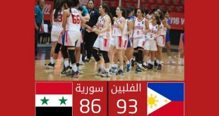تأهل منتخب سورية لكرة السلة للسيدات تحت 16 عاماً للدور نصف النهائي لبطولة كأس آسيا للمستوى الثاني المقامة حالياً في العاصمة الأردنية عمان وذلك بفوزه على المنتخب الايراني بنتيجة 59-46 نقطة.