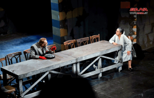 يذكر أن العرض من تمثيل أحمد حمودة وآدم الشامي وآية آغا وجوان لباد وجيانا عيد ودرويش عبد الهادي ورزان نعوف ورياض نحاس وزين العابدين مريشة وسارة بركة وعلي سليمان وعمر بدران وغفران هواري وفوز عليا وكرم شنان وكنان كريدي ومرهف الكراد ومحمد غيث الأدهمي ووسام رضا ويارا خوري وياسمين الجباوي مع مشاركة لطلاب السنوات السابقة.