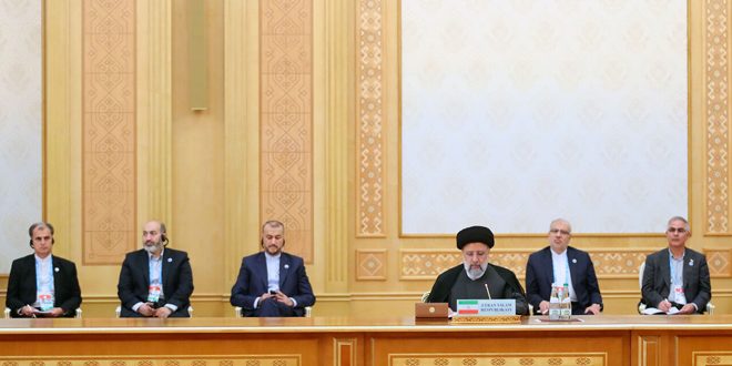 ونقلت وكالة ارنا عن رئيسي قوله في كلمة له اليوم خلال اجتماع القمة السادس لقادة الدول المطلة على بحر قزوين الذي استضافته عشق اباد عاصمة تركمانستان إن “المبدأ الأساسي المتفق عليه بشأن الصلاحية الحصرية للدول المتشاطئة على بحر قزوين لتقرير مصير هذه المنطقة وحل قضاياها يمنع الأطراف الدخيلة من التدخل بشؤون بحر قزوين أو ممارسة سلوكيات عدائية على حساب الدول المطلة عليه”.