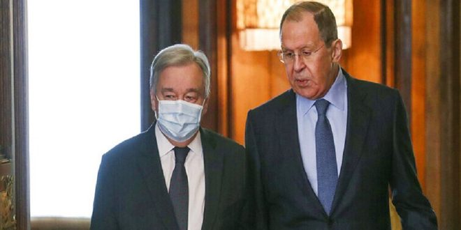ونقلت وكالة نوفوستي عن وزارة الخارجية الروسية قولها في بيان نشر اليوم: “إن لافروف أكد لغوتيريش أن تصدير الحبوب الأوكرانية يعوقه زرع كييف الألغام في البحر الأسود مجدداً استعداد روسيا لمواصلة الوفاء بالتزاماتها لتصدير الأغذية والأسمدة على الرغم من أن تنفيذ ذلك معقد بشكل كبير بسبب العقوبات الغربية أحادية الجانب وغير القانونية”.