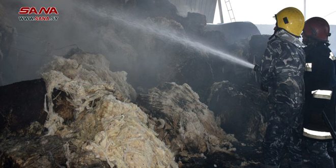 وأكد آمر زمرة فوج الإطفاء التي تعاملت مع الحريق مياس غريب في تصريح لمراسل سانا أنه تمت السيطرة على النيران بجهود مضنية بذلتها طواقم الإطفاء من خلال تطويق موقع الحريق وعزل بالات الصوف المحترقة عن نظيراتها السليمة منعاً من امتداد النيران إليها مع ترحيل كميات من الصوف خارج المستودع بالتوازي مع عمليات إخماد النيران.