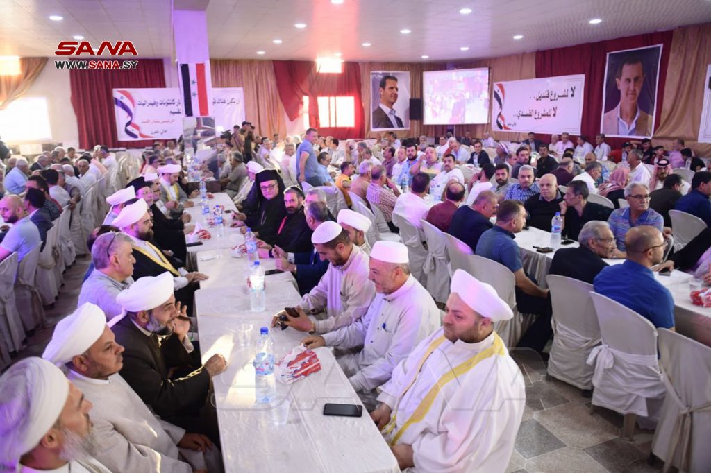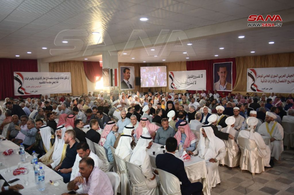 وأكد المشاركون في الملتقى في بيانهم “الوقوف مع مشروع الوطن الواحد ووحدة ترابه ورفض كل مشاريع الانفصال أو الكانتونات والفيدراليات والإدارات الذاتية والدفاع عن وحدة الأراضي السورية .. ورفض المخططات الانفصالية وما يسوق عما يسمى كردستان سورية” مشيرين إلى أن “ما يسمى قنديل وقسد لا يمثلون الأكراد السوريين الوطنيين الأشراف”.