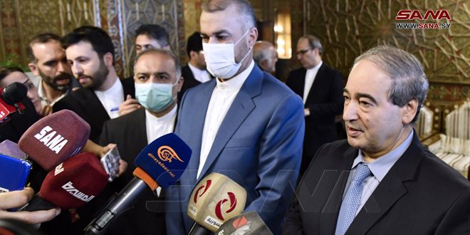 وأضاف المقداد: الأوضاع في سورية تحتاج مزيداً من المشاورات بين البلدين الشقيقين ولا سيما تكرار الاعتداءات الإسرائيلية على الأراضي السورية والتهديدات التي تطلقها “إسرائيل” ضد إيران والهدف واحد منها هو إضعاف جبهة المقاومة”.