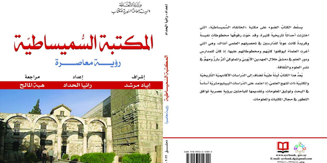 المكتبة السميساطية كتاب أعدته الباحثة رانيا الحداد وأشرف عليه الناقد إياد مرشد يكشف عن حب العرب للثقافة وشغفهم باقتناء الكتب وما يوجد في دمشق من علم ومدارس ومكتبات أهمها مكتبة “الخانقاه” إضافة إلى أشهر علمائها وخزانتها وما تحتويه من علوم متنوعة حتى وصولها إلى مكتبة الأسد الوطنية بدمشق.
