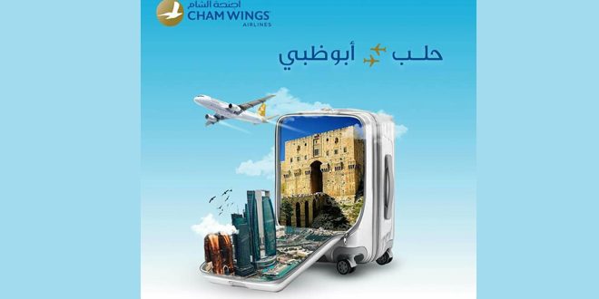 أعلنت شركة أجنحة الشام للطيران عن بدء تسيير رحلاتها من مطار حلب الدولي إلى مطار أبو ظبي في الإمارات العربية المتحدة بمعدل رحلة واحدة مبدئياً يوم الجمعة من كل أسبوع.