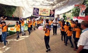 بمشاركة 50 طفلاً نظم فرع منظمة طلائع البعث في محافظة الحسكة اليوم فعالية ثقافية وفنية للأطفال في حديقة الكندي بمدينة القامشلي تضمنت فقرات ترفيهية وفنية وأغاني وطنية.