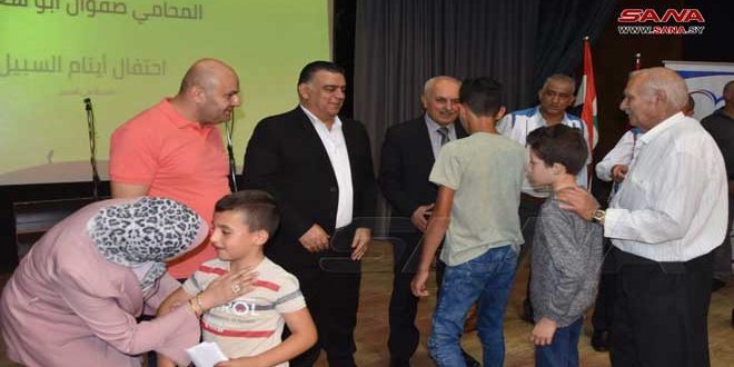 كرمت محافظة طرطوس وجمعية السبيل الخيرية 293 طفلاً وطفلة من فاقدي الأب والأم في المحافظة ضمن فعالية احتفال أيتام السبيل التي أقامتها الجمعية على خشبة مسرح المركز الثقافي العربي بالمدينة.