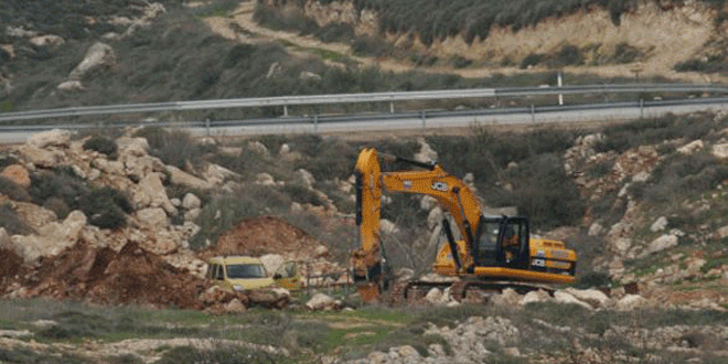 جرفت قوات الاحتلال الإسرائيلي اليوم مساحات من أراضي الفلسطينيين جنوب مدينة الخليل بالضفة الغربية.
