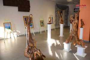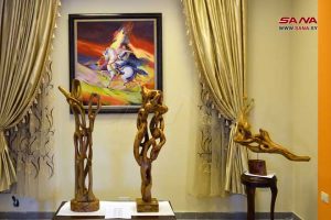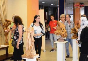 النحات حسن حلبي الذي شكلت أعماله النحتية بموضوعاتها المختلفة تجسيداً لرموز الحضارة الأوغاريتية التي تدعو إلى السلام ونشر المحبة وطائر الفينيق الذي يحتضن الأرض السورية ويلملم جراحها مروراً بالصوفية والدراويش وصولاً إلى المرأة ورمزيتها في القوة والقدرة على التحمل قدم في المعرض حصيلة 15 عاماً من النحت على الخشب بأنواعه المختلفة من الزيتون والكينا والتوت والجوز.