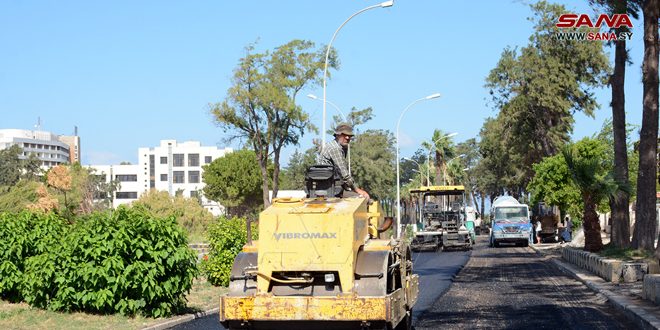 من جهته ذكر المهندس سعيد دروبي من فرع الشركة العامة للطرق والجسور أن ورشات وآليات الفرع تنفذ حالياً أعمال قشط ومد طبقة مجبول اسفلتي ضمن المواصفات الفنية المطلوبة لتأهيل الطرقات مع صيانة لحجر الرصيف من دوار المدينة الرياضية باتجاه المناطق السكنية مقابل فندق اللاميرا.
