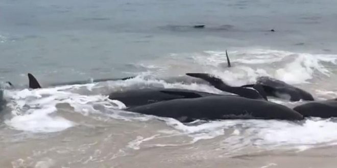 وذكر مسؤولون أنهم يجمعون عينات أنسجة من أكبر عدد ممكن من الحيتان النافقة لتحديد سبب الجنوح الجماعي.
